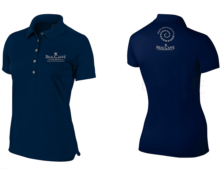 La polo Real Caffè è in 100% puro cotone con chiusura a cinque bottoncini, personalizzata con il nostro logo in argento.